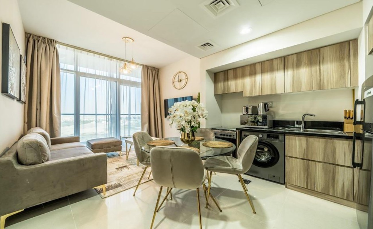 Live the tranquil lifestyle in this beautifully designed 1-bedroom apartment in Elo 3, located within the vibrant community of Damac Hills 2. This contemporary apartment features a smart layout with an open-plan living area, sleek kitchen, spacious bedroom with built-in wardrobes, and a modern bathroom. Large windows provide plenty of natural light and offer views of the serene surroundings.