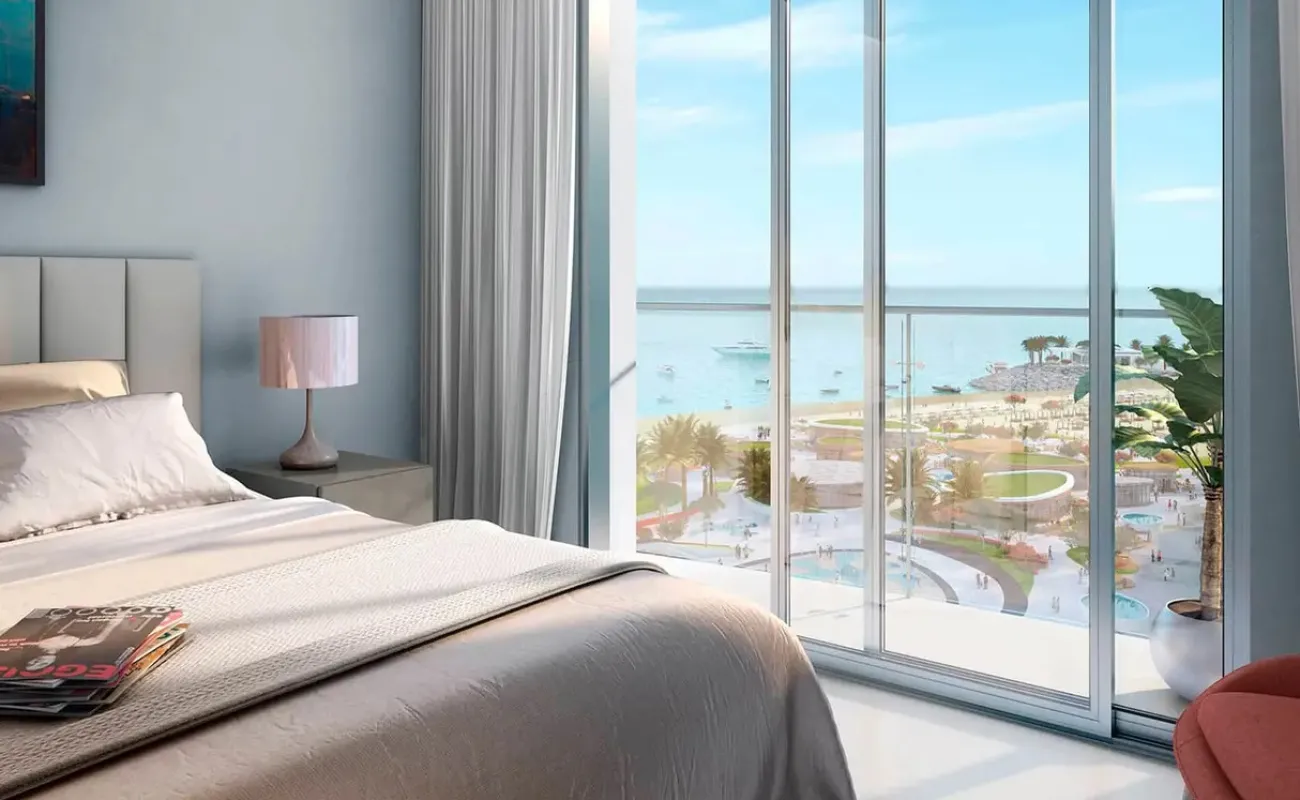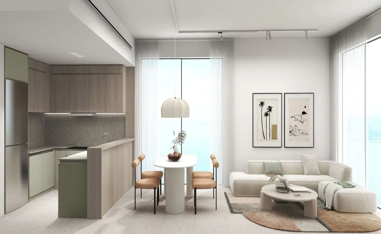 Discover serene waterfront living with this elegant 1-bedroom apartment in Bayviews, located within the vibrant Mina Al Arab community in Ras Al Khaimah. The apartment offers a well-designed layout with a bright living and dining area, complemented by large windows that bring in natural light and showcase relaxing views of the sea and surrounding greenery.